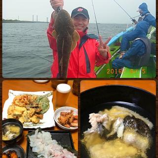 コトブキ 鹿島港釣果 4時頃出船 ショウサイフグ カレイ 27cm 花鯛 27cm マゴチ 40cm ベラ 各1匹ずつで少なめ フグは危険な部位を船頭さんが 取り除いてくれましたので 持ち帰りました 花鯛 フグ マゴチは刺身に カレイ ベラは